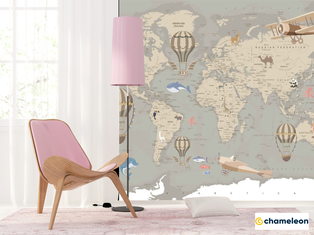 Фотошпалери «Фотошпалери Бежева карта з повітряними кулями», (арт. 33910) - купити в інтернет-магазині «Будинок Фотошпалер» Хамелеон