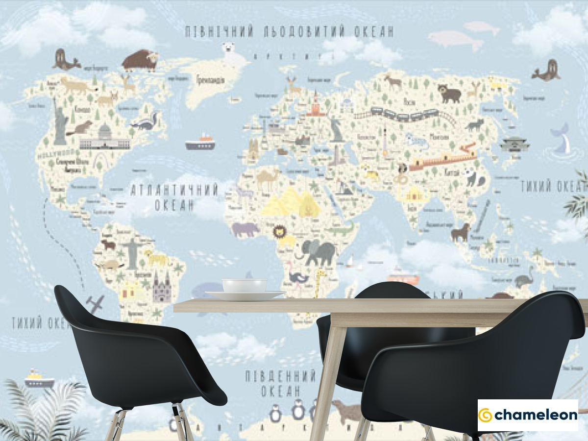 Фотошпалери «Фотошпалери Карта дитяча Архітектура тропічних листя», (арт. 33923) - купити в інтернет-магазині «Будинок Фотошпалер» Хамелеон