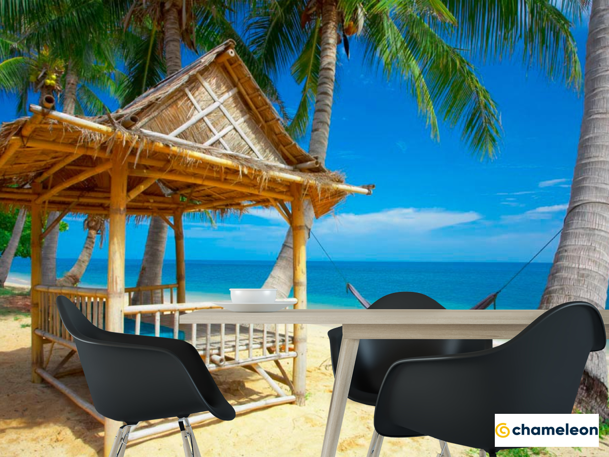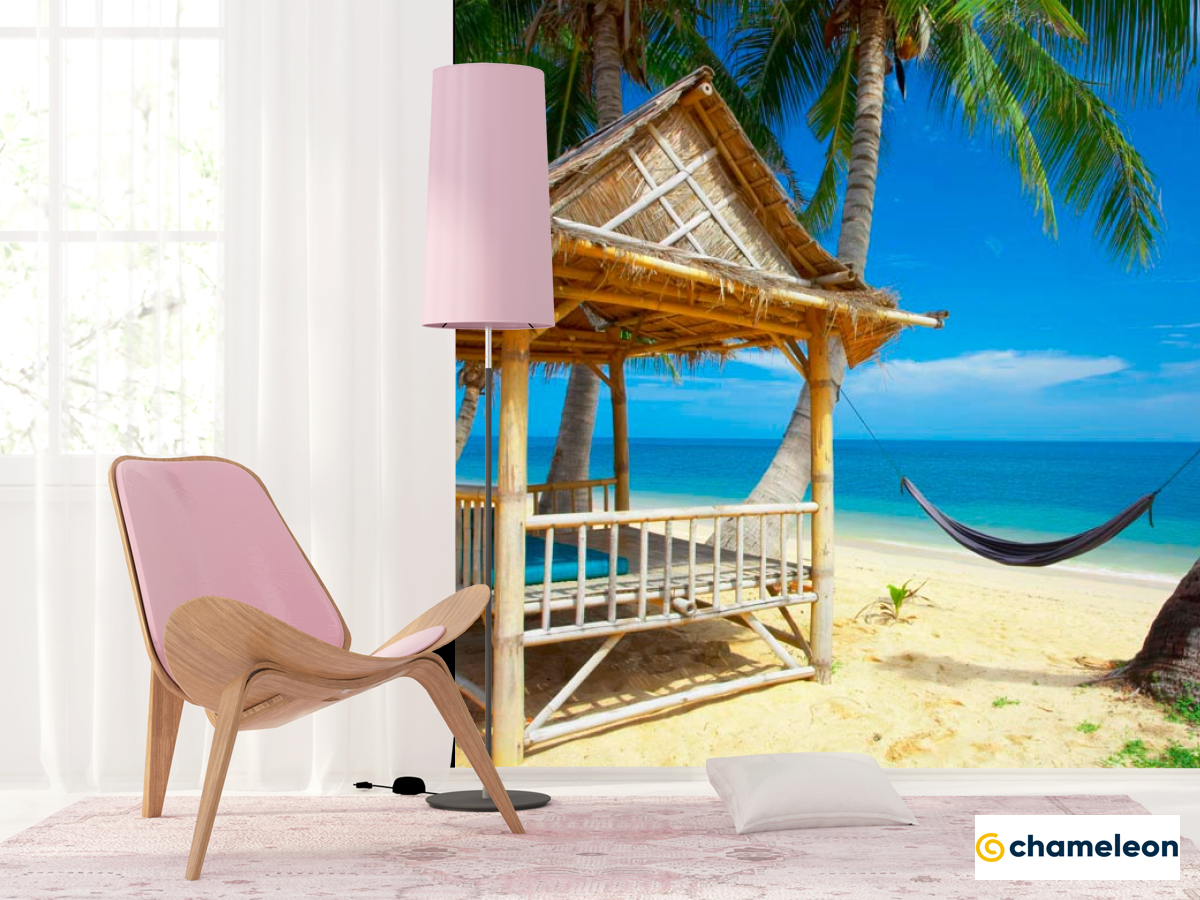 Фотошпалери «Фотошпалери Хатина, гамак, пальми», (арт. 3431) - купити в інтернет-магазині «Будинок Фотошпалер» Хамелеон