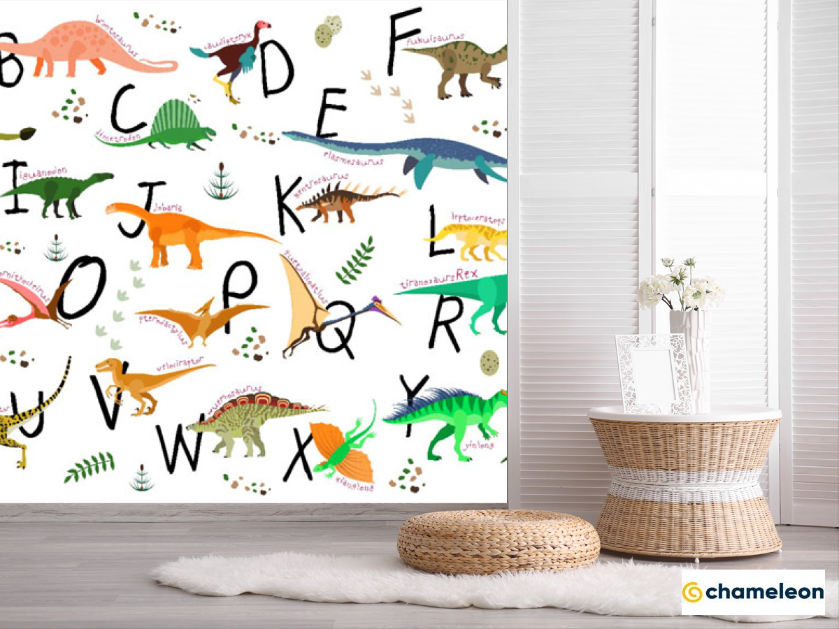 Фотошпалери «Фотошпалери динозаври з англійським алфавітом», (арт. 34333) - купити в інтернет-магазині «Будинок Фотошпалер» Хамелеон
