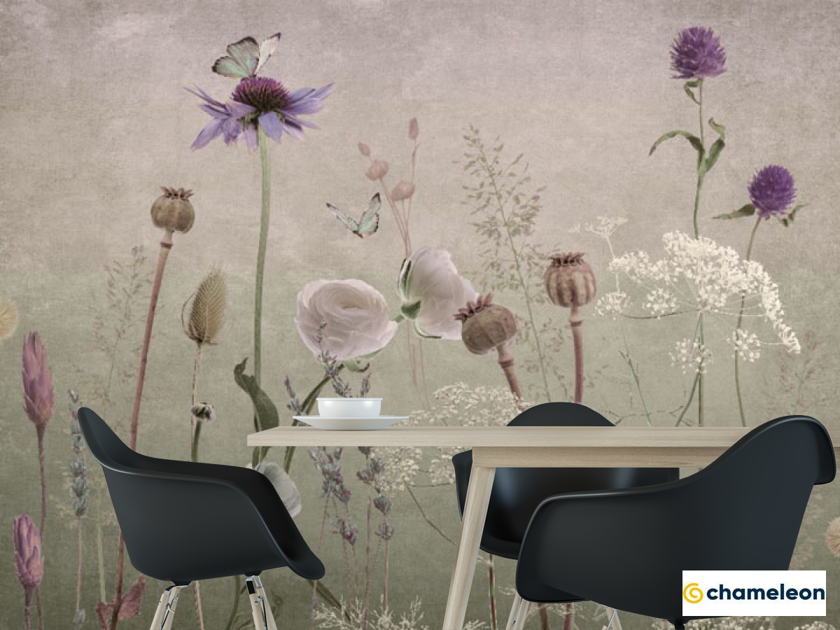 Фотошпалери «Фотошпалери польові дизайнерські квіти рожеві», (арт. 34351_1) - купити в інтернет-магазині «Будинок Фотошпалер» Хамелеон