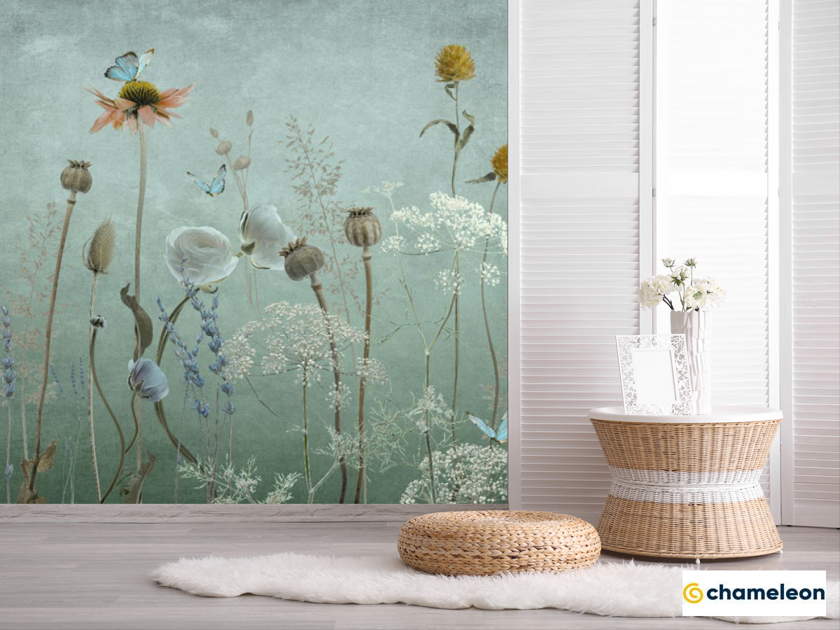 Фотошпалери «Фотошпалери польові дизайнерські квіти зелені», (арт. 34351_2) - купити в інтернет-магазині «Будинок Фотошпалер» Хамелеон