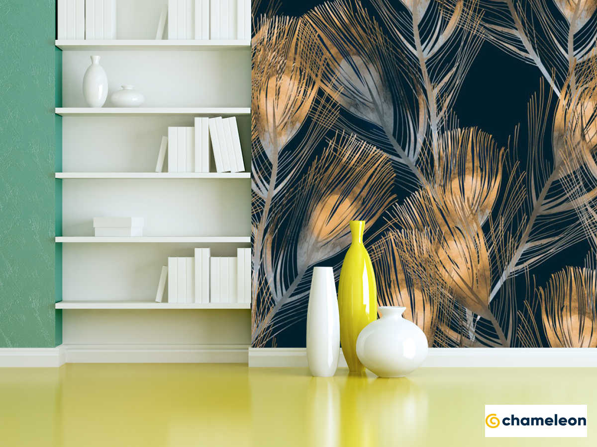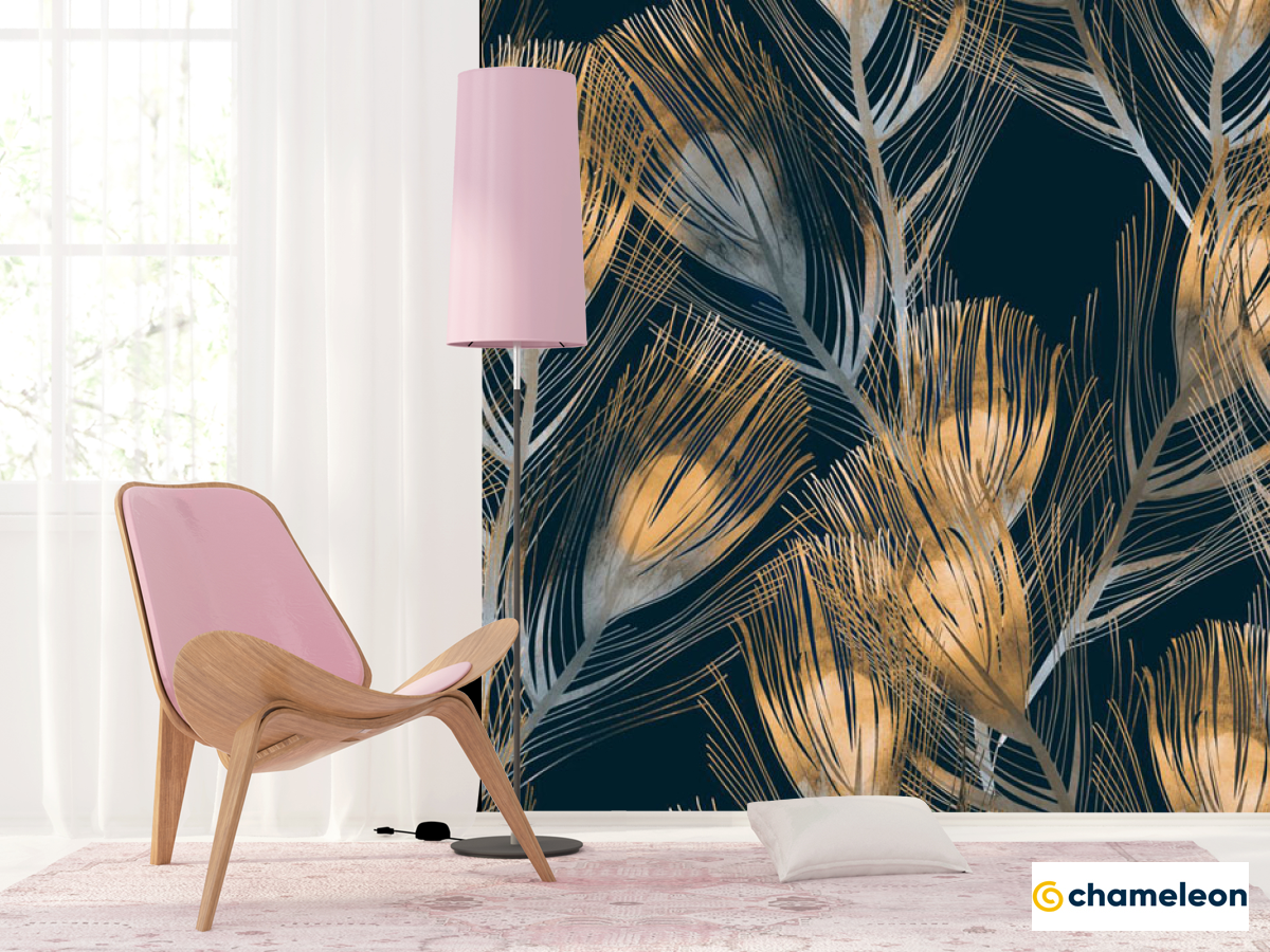 Фотошпалери «Фотошпалери золоті пір'я», (арт. 34370) - купити в інтернет-магазині «Будинок Фотошпалер» Хамелеон