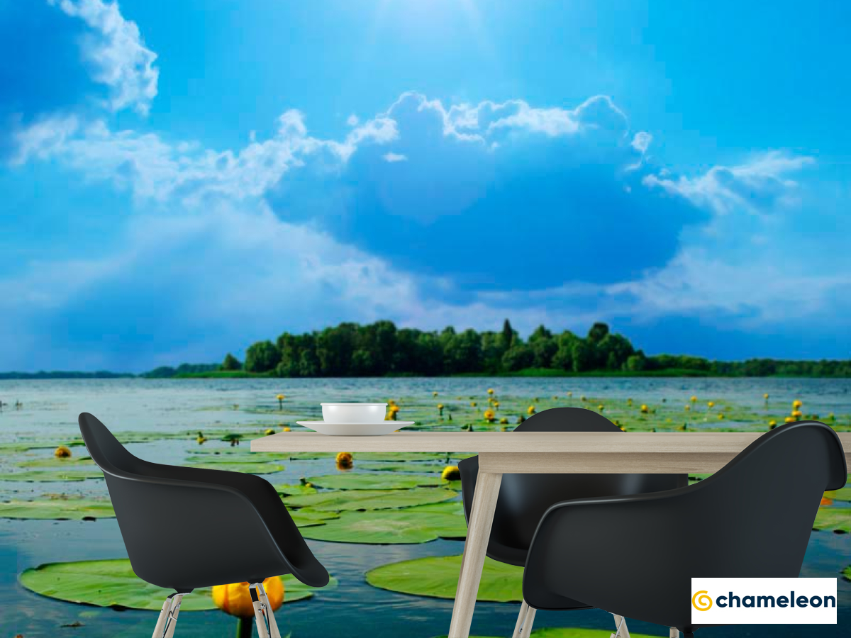 Фотошпалери «Фотошпалери Річка, хмари, кубушки», (арт. 3630) - купити в інтернет-магазині «Будинок Фотошпалер» Хамелеон