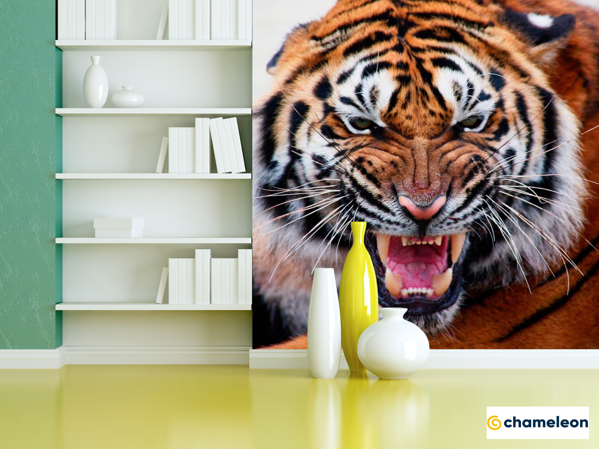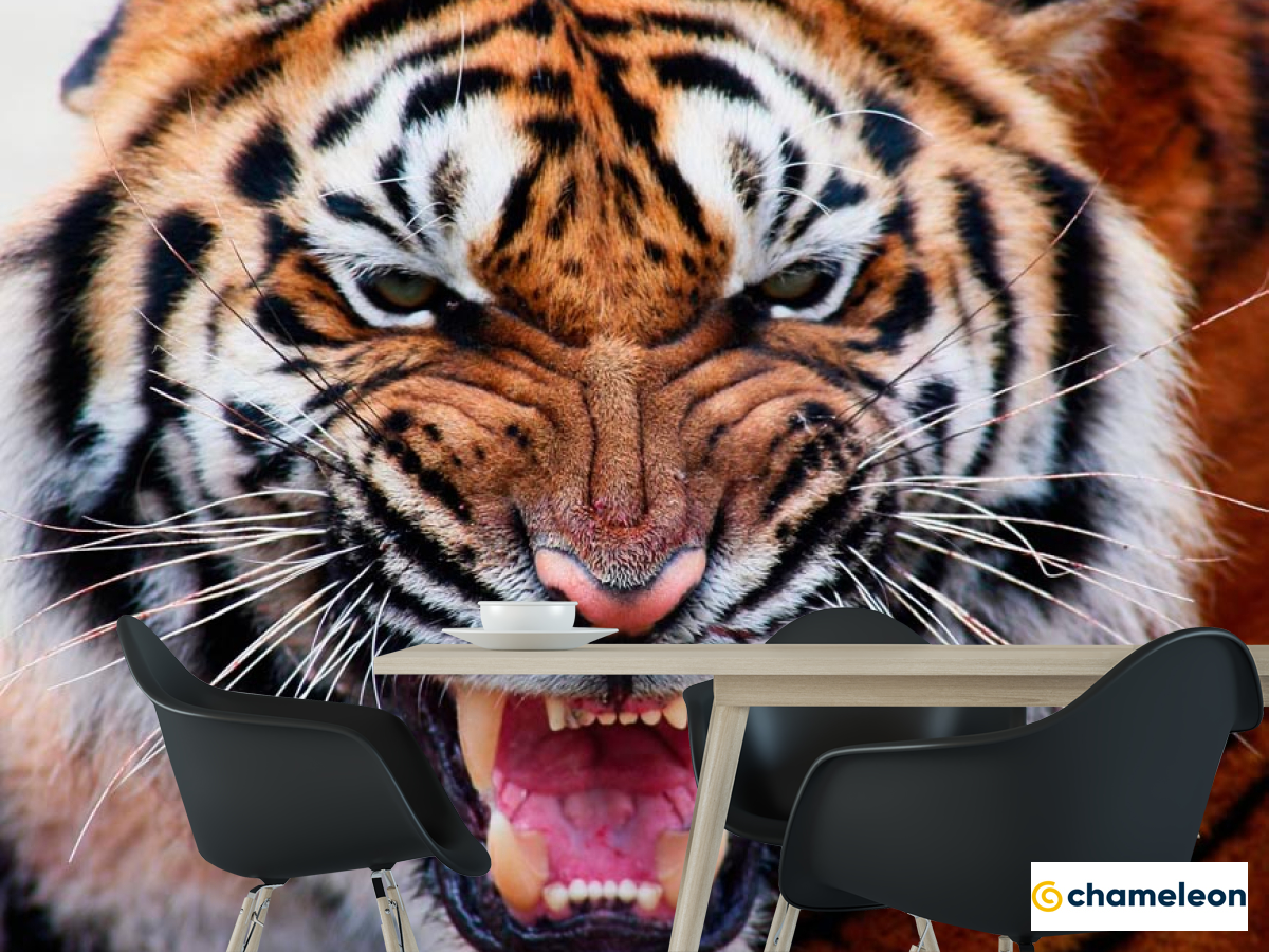 Фотошпалери «Фотошпалери Грізний оскал тигра», (арт. 5676) - купити в інтернет-магазині «Будинок Фотошпалер» Хамелеон