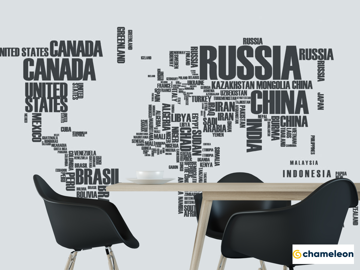 Фотошпалери Карта материків написами