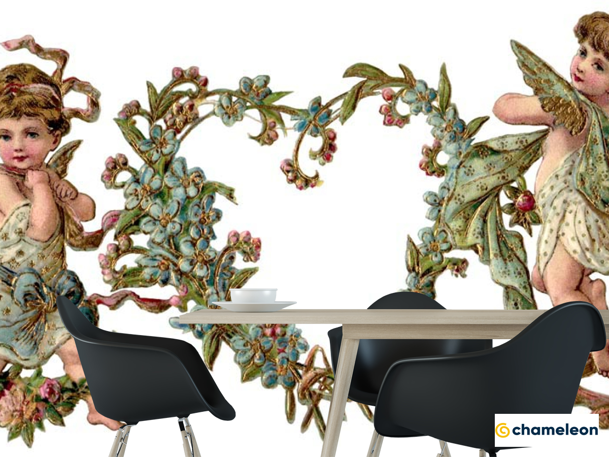Фотошпалери «Фотошпалери Купідони з квітами», (арт. 8161) - купити в інтернет-магазині «Будинок Фотошпалер» Хамелеон