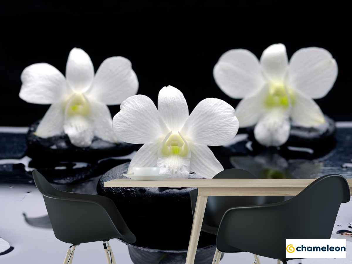 Фотошпалери «Фотошпалери Білі орхідеї на каменях», (арт. 8847) - купити в інтернет-магазині «Будинок Фотошпалер» Хамелеон