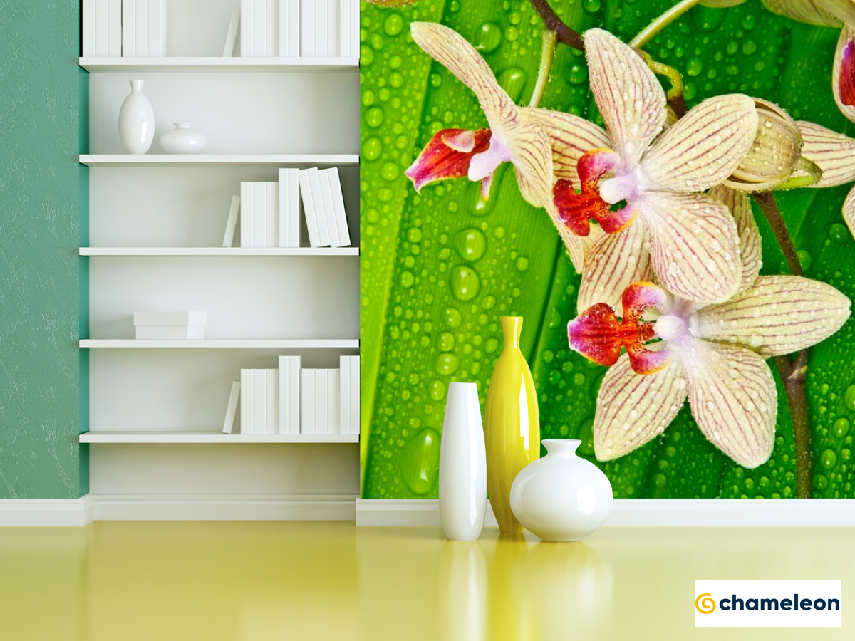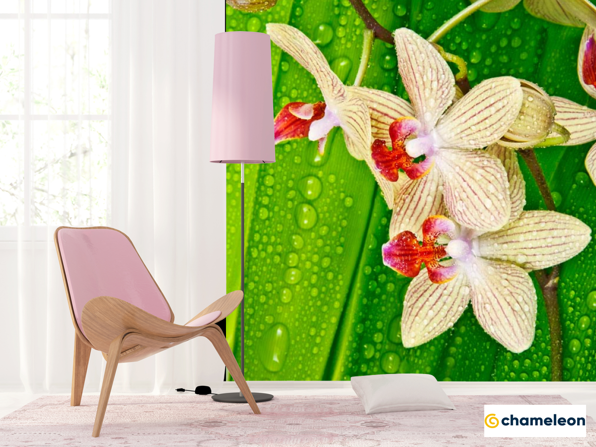Фотошпалери «Фотошпалери Орхідеї на аркуші», (арт. 8904) - купити в інтернет-магазині «Будинок Фотошпалер» Хамелеон