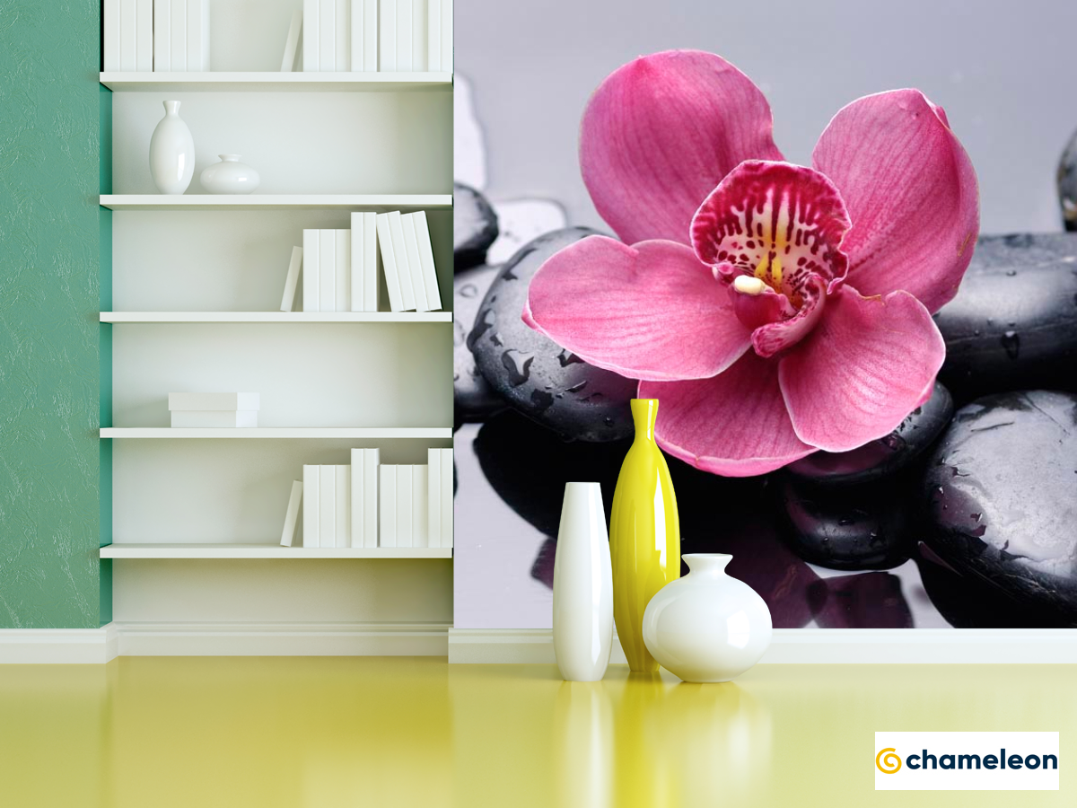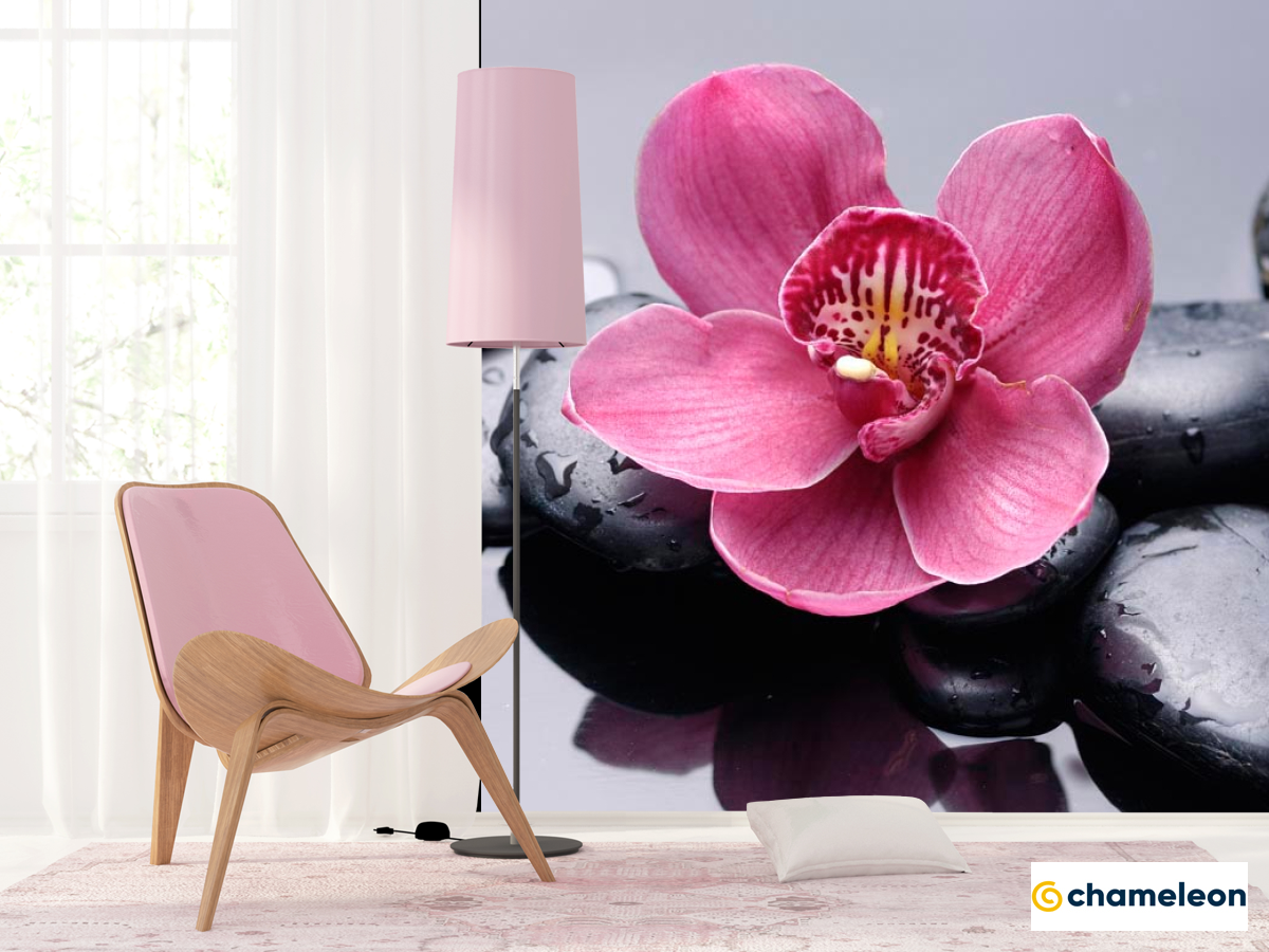 Фотошпалери «Фотошпалери Фотошпалери Чорні камені, орхідея», (арт. 9538) - купити в інтернет-магазині «Будинок Фотошпалер» Хамелеон