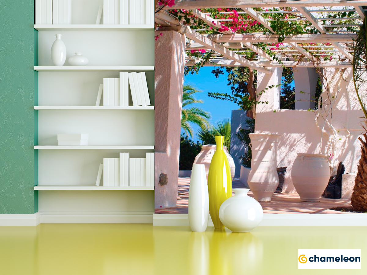 Фотошпалери «Фотошпалери Дворик в Санторіні», (арт. 9582) - купити в інтернет-магазині «Будинок Фотошпалер» Хамелеон