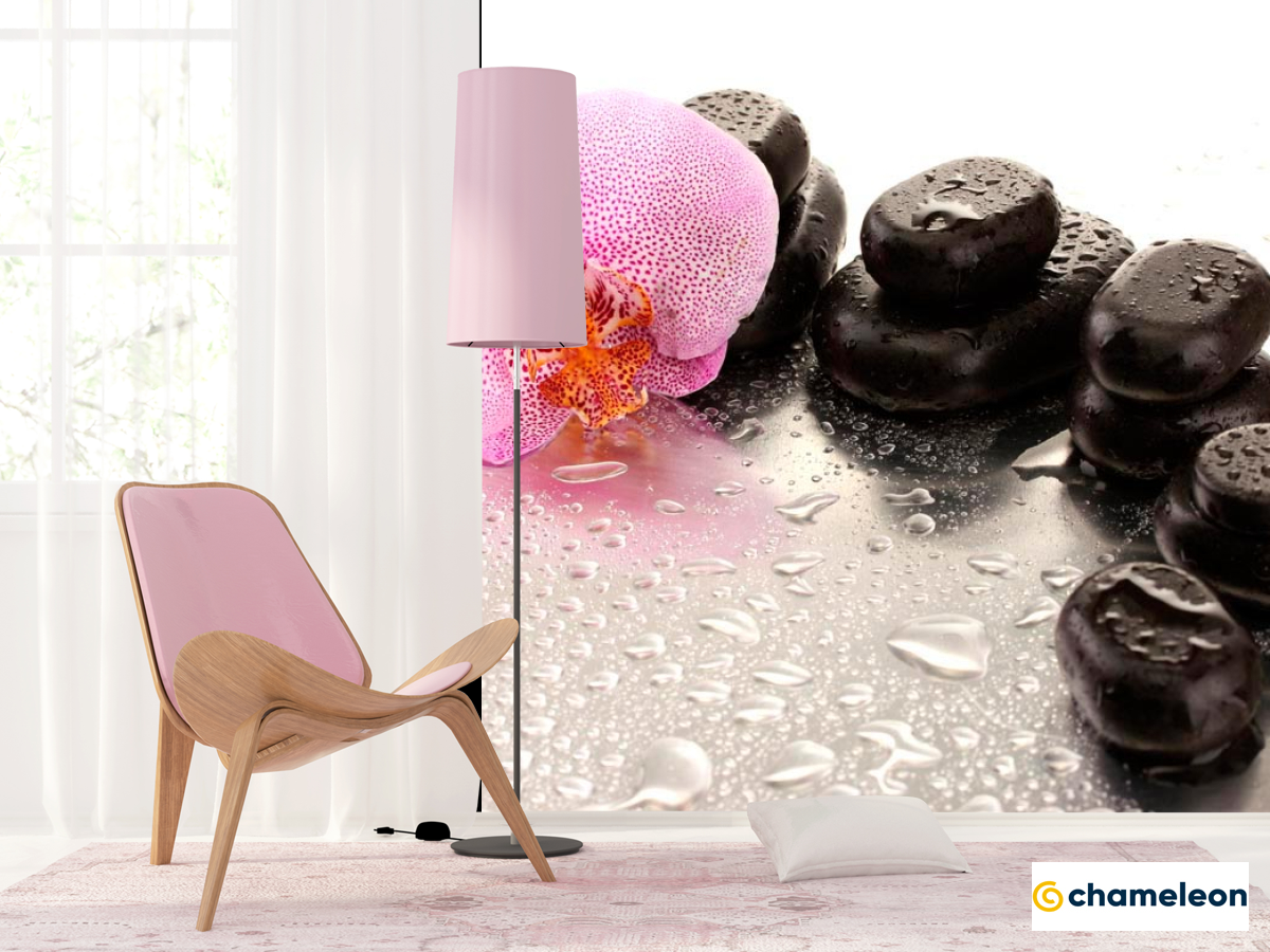 Фотошпалери Роса, камені, орхідеї